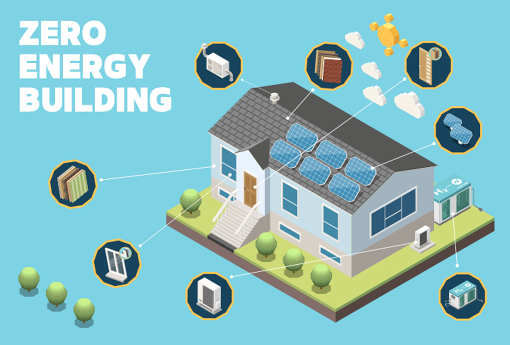 Zero-Energy Buildings (ZEB) refer to buildings where the total amount of energy consumed is offset by the amount of renewable energy produced on-site, resulting in a net-zero energy balance. These buildings operate without reliance on fossil fuels, instead generating all necessary energy exclusively ...